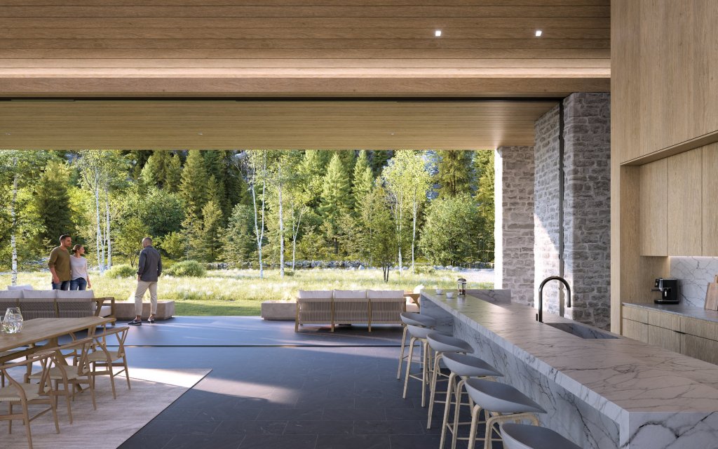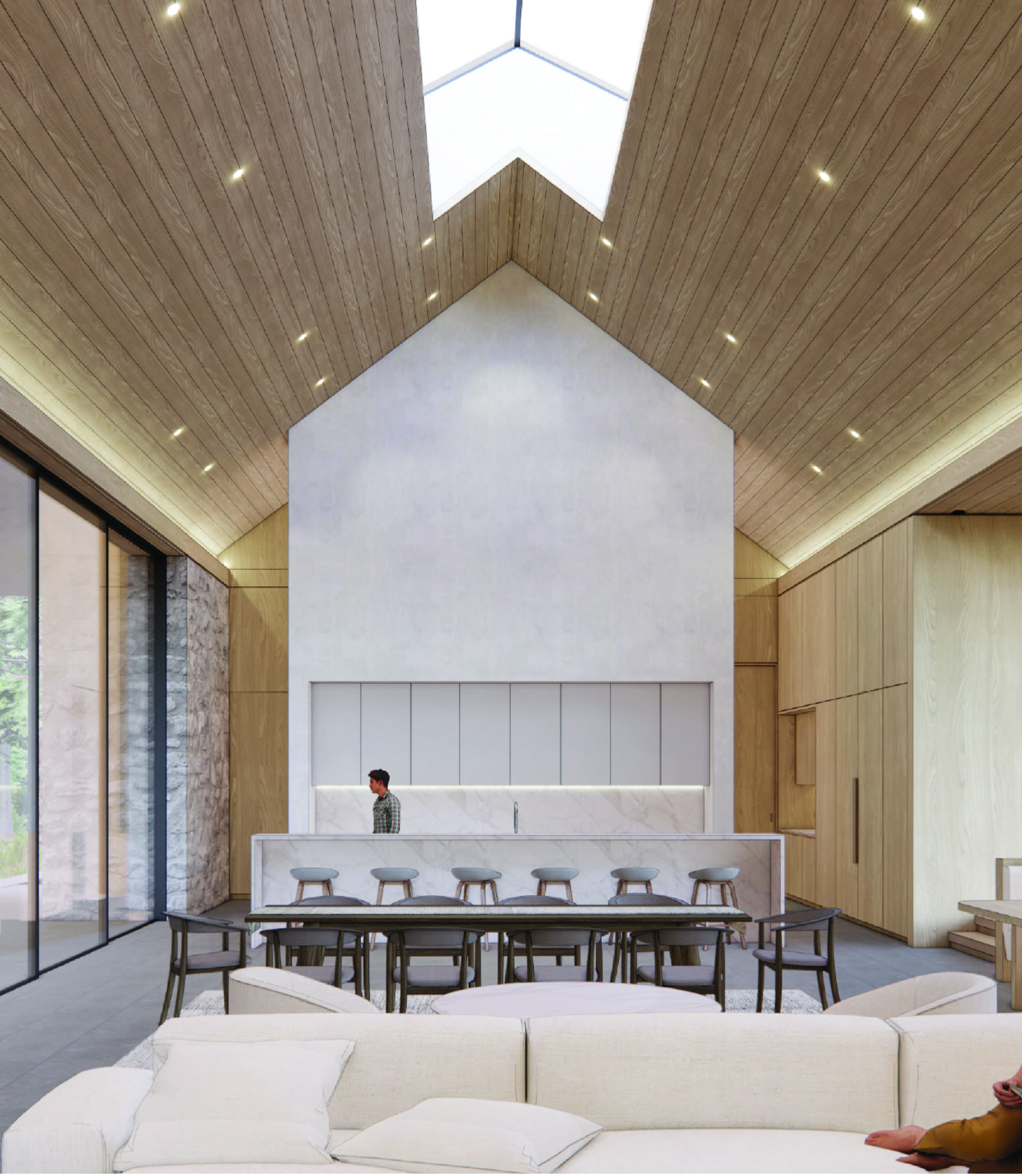 A 9,000 square-foot retreat, is seamlessly woven into its forested riverfront setting. Inspired by the timeless organization of historic fishing camps, the design features stone-clad cabins connected by light-filled wood and glass walkways, fostering a harmonious dialogue with the surrounding landscape. At its heart, the central cabin serves as the home’s core, anchoring the composition while three guess cabins extend outward, immersing residents in the natural beauty of the site.